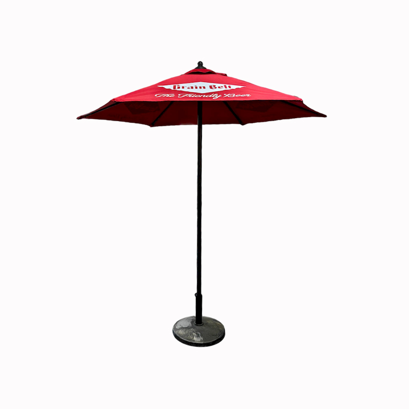 Products > Patio umbrella > Commercial 6-rib outdoor umbrella with logo printing on center column, suitable for restaurant patio umbrella