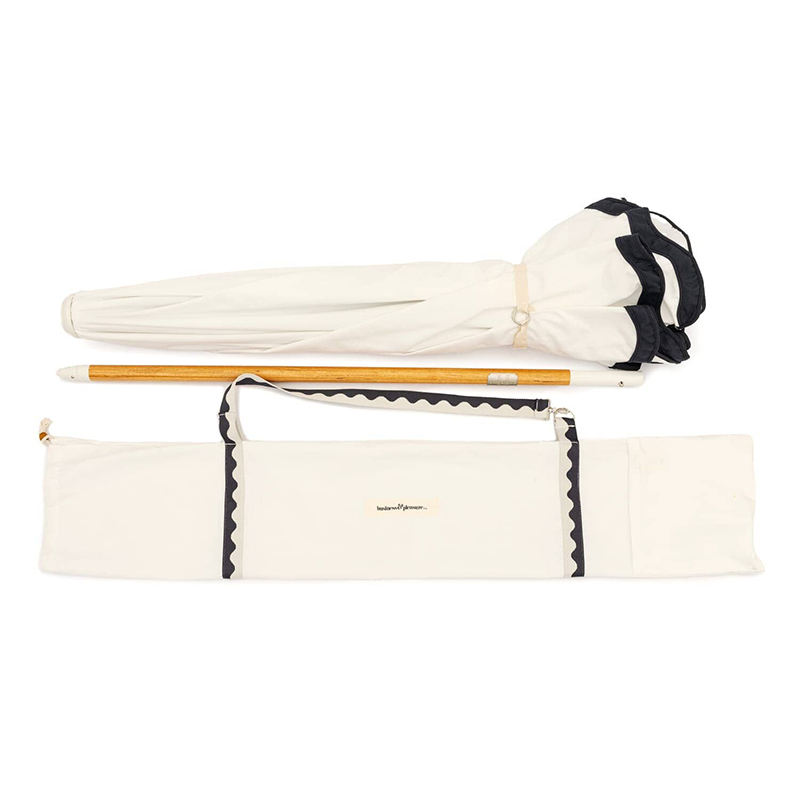 Products > Beach umbrella > 8-foot fiberglass frame, large wooden pole, vintage fan-shaped edge outdoor garden umbrella, suitable for beach and patio.