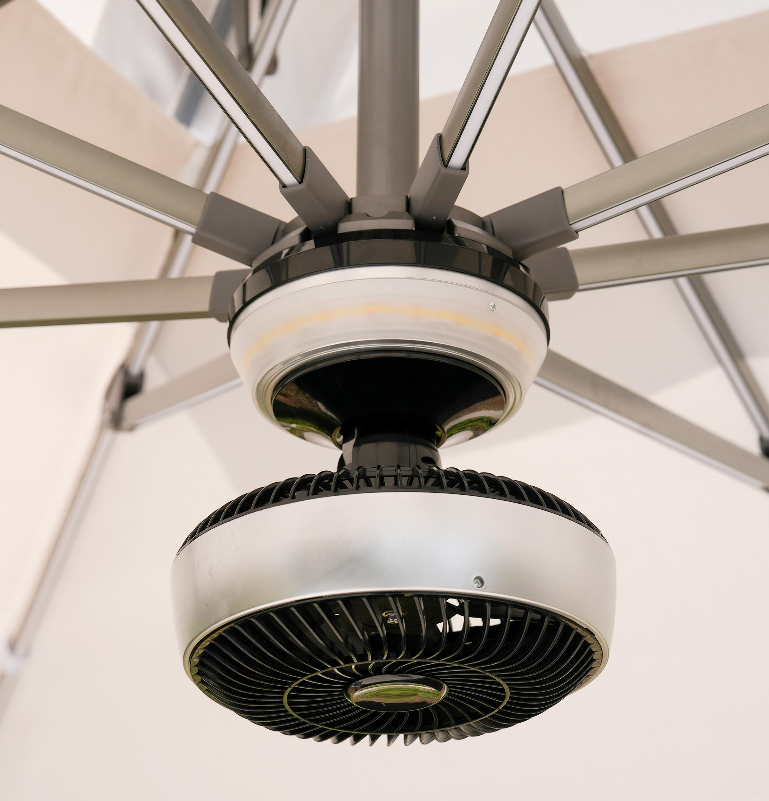 Products > Patio umbrella > Solar-powered LED patio umbrella with fan, outdoor sunshade, hotel garden cantilever umbrella