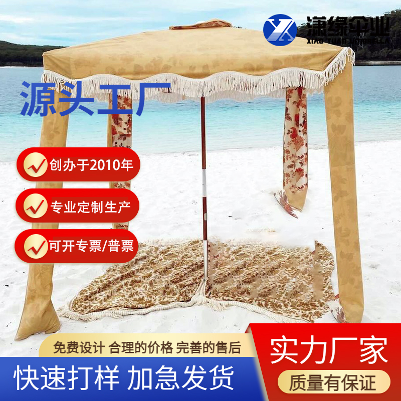 New luxury beach hut with tassel umbrella, portable sunshade, beach umbrella with enclosure.