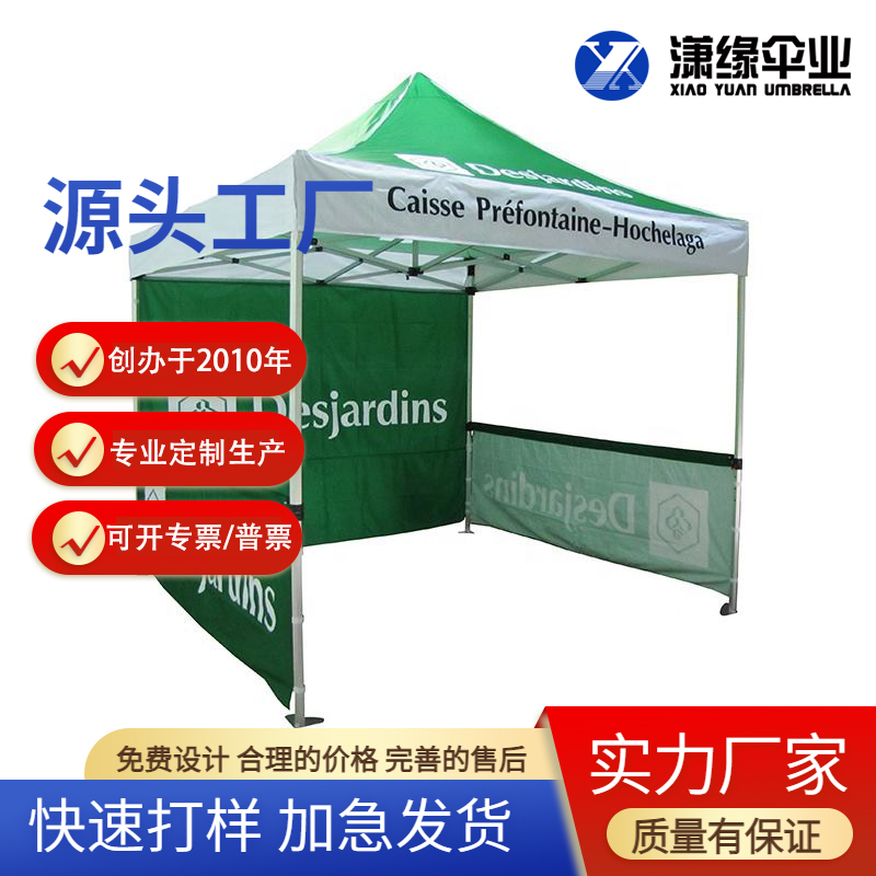 Outdoor folding tent with curtain windows, custom logo printing, suitable for various events.
