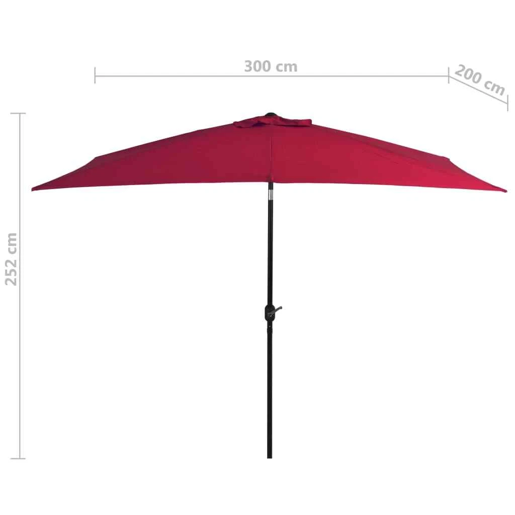 300x200cm Garden Sunshade Umbrella, Square Beach Umbrella, Patio Umbrella, Center Post Umbrella with 6 Ribs