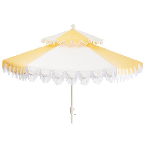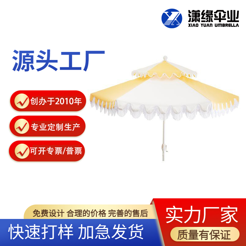 Double-layered tassel patio umbrella, garden sunshade, hand-cranked center-pillar umbrella, terrace sunbrella.