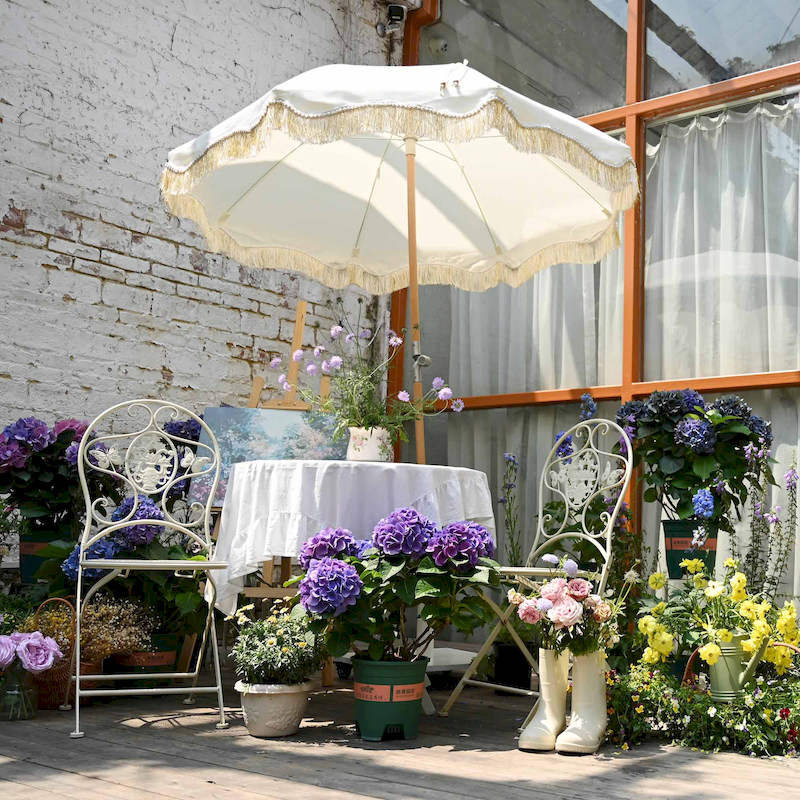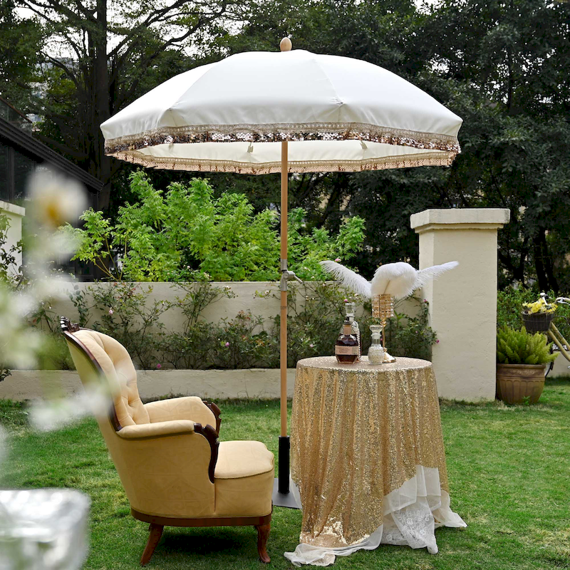 6-foot wooden patio umbrella with tassels, garden sunshade, leisure terrace umbrella