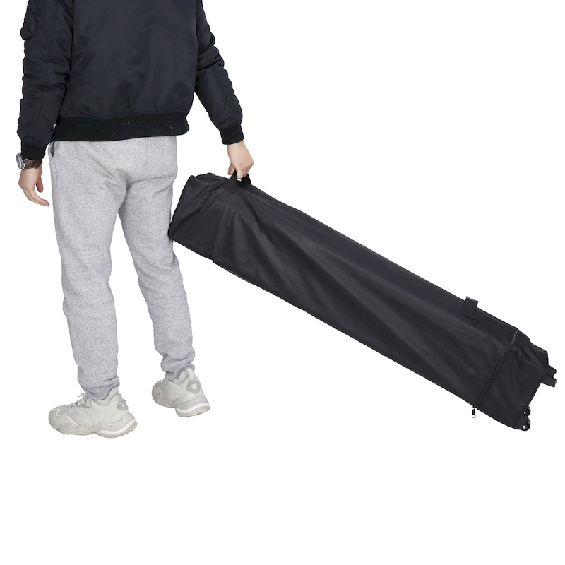 Products > Folding tent > Outdoor folding awning, four-corner awning for events, with wheels, customizable, logo printing available. Manufacturer.